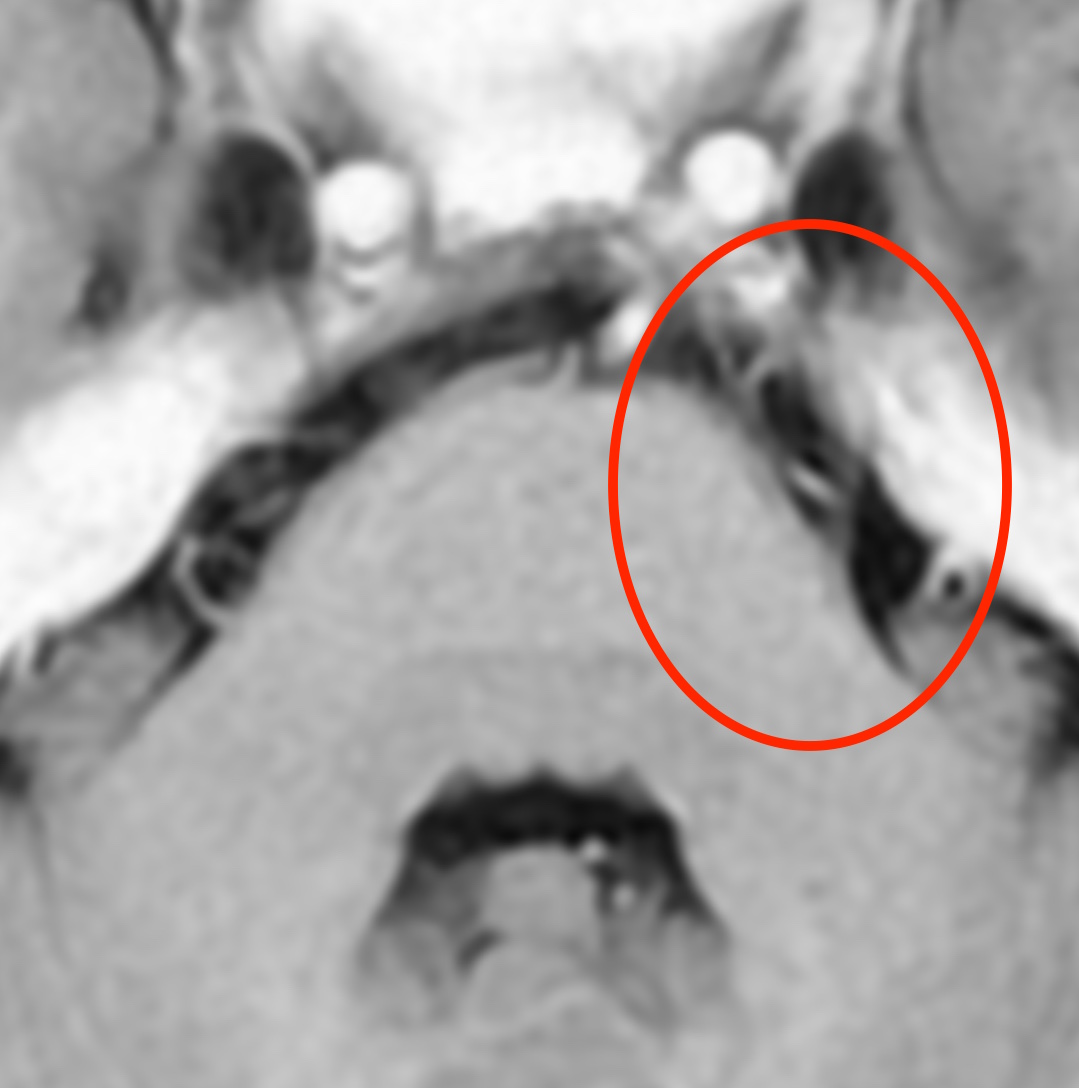 MRIで三叉神経が脳に入る部分を撮像しました。