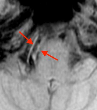 くも膜下出血と紛らわしい突発頭痛として、椎骨動脈解離や可逆性脳血管攣縮症候群(RCVS)などがありますが、これらは血管の微妙な状態を判断するので、1.5T以上の高磁場機種でなければほぼ不可能とされています。