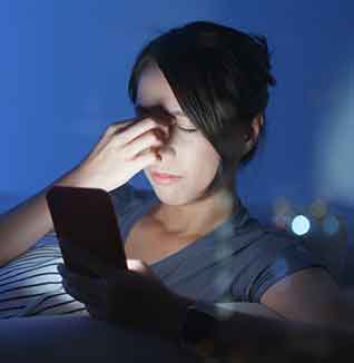 こうした低波長光は目を痛めるだけでなく、脳を興奮状態にするため、脳内にある体内時計を狂わせて不眠症の原因ともなり、それがさらに片頭痛を悪化させるという悪循環になります。