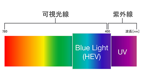 ブルーライトというのは、単に「青い光」という意味ではありません。眼科医を中心に作られたブルーライト研究会によると、ブルーライトとは、人の目で見る事のできる光(可視光線)の中で最も波長が短く、強いエネルギーを持っているとされています。高エネルギー可視光線(High Energy Visible Light)の事で、紫外線に近いものです。